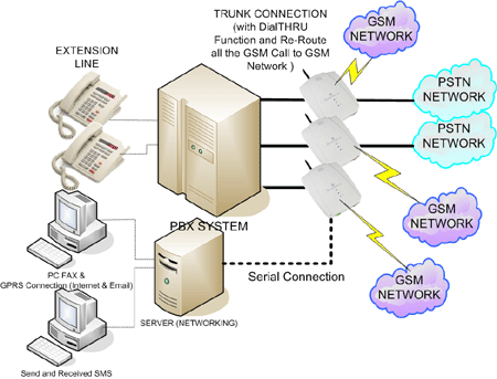 The GSM Terminal or Gateway (also Fixed Cellular Terminal, Fixed Wireless Terminal, Cellular Gateway) is a device that enables any user to save money on calls from fixed phones to GSM networks. (For information about 3G - UMTS Gateways click here.)